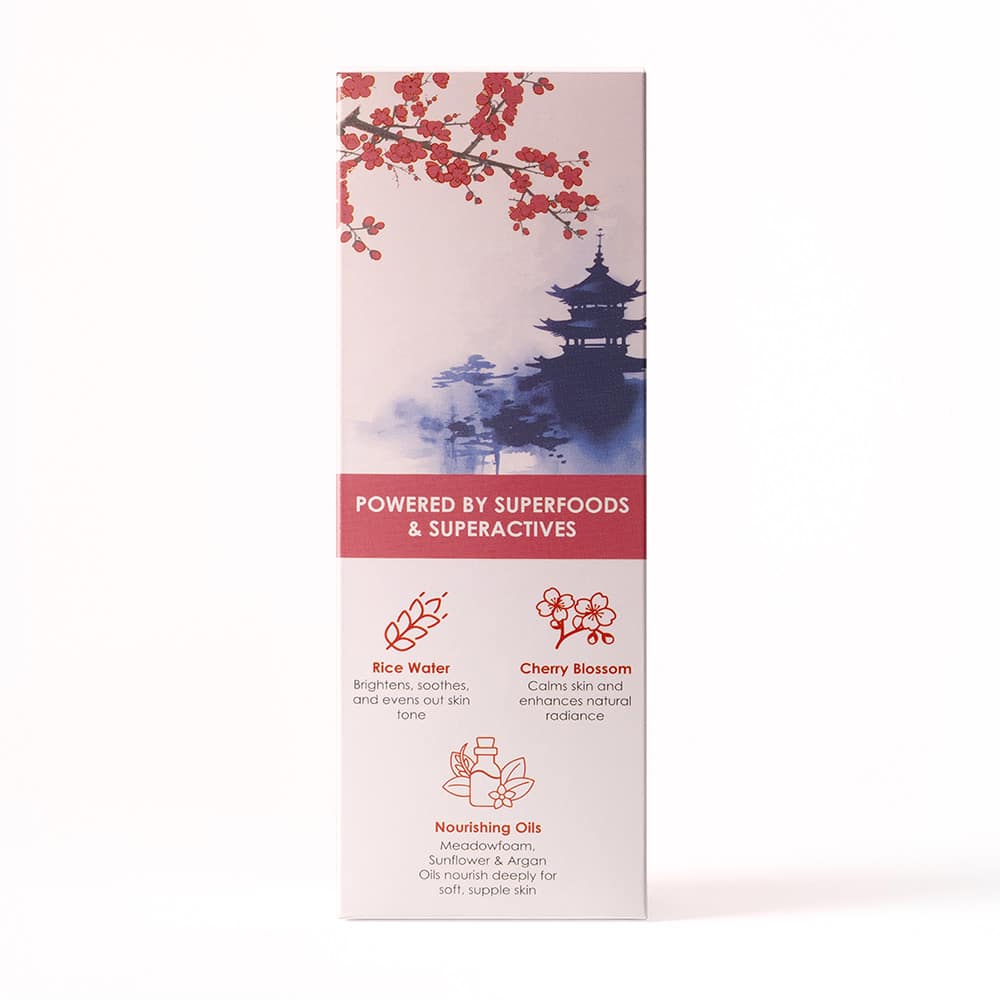 Rice Water, Cherry Blossom, Meadowfoam Seed Oil, Sunflower Seed Oil, Argan Oil